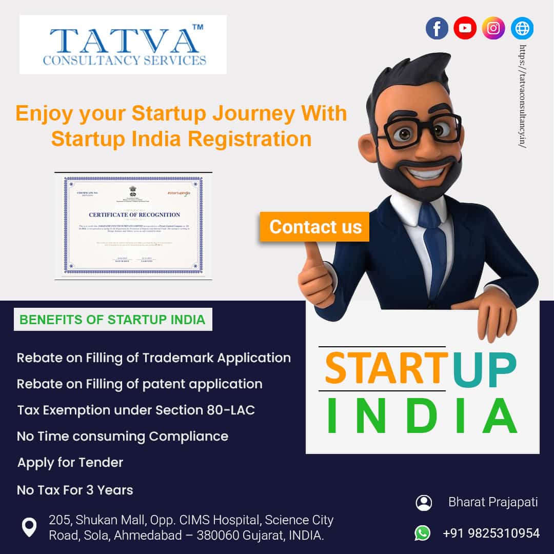by nimesh December 27, 2021 Startup India Registration Consultant AhmedabadBenefits of the Startup INDIA RegistrationRebate on Filling of Trademark ApplicationRebate on Filling of patent applicationTax Exemption under Section 80-IACNo Time consuming ComplianceApply for TenderNo Tax For 3 YearsFor Further Detail Contact :Tatva Consultancy Services: (+91) 98253 10954 Contact Us Now! સ્ટાર્ટઅપ ઇન્ડિયા સર્ટિફિકેશન અને તેના ફાયદા Our Services UDYAM / MSME Registration / DIC / SSI ISO Certification Exhibition Subsidy / MDA IEM Registration CE Marking / CE Certificate Industrial Interest Subsidy Import Export Code : IEC STARTUP INDIA CLCSS / Central Subsidy Trademark Registration R & B Class Registration State Capital Subsidy NSIC Registration ISO Implementation Machinery Loan and Subsidy / SME Loan CSPO Registration GMP / HACCP Certificate Our Valuable Customer Our Testimonials Posted on Bhavik Prajapati Trustindex verifies that the original source of the review is Google. Good presentation and awesome service Posted on Parth Jadeja Trustindex verifies that the original source of the review is Google. Very good. We have done so many works with them and they have provided very good advices and done work systematic. They are one of the best consultant in market. Posted on Vipul Jayswal Trustindex verifies that the original source of the review is Google. we are using the services from Tatva Consultancy, our experience is very good. Posted on Naresh Gauswami Trustindex verifies that the original source of the review is Google. Fantastic Done Work Share FacebookTwitterPinterestEmail